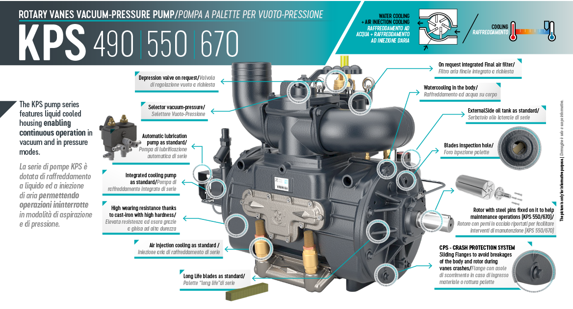 La serie de bombas KPS cuenta con una exclusiva carcasa refrigerada por líquido que garantiza un funcionamiento ininterrumpido tanto en modo de vacío como de presión. Diseñada para aplicaciones exigentes que requieren un rendimiento prolongado y constante, como yacimientos petrolíferos, camiones de vacío combinados y entornos industriales, la serie de bombas KPS ofrece una fiabilidad y eficiencia excepcionales. Tanto si es un usuario profesional como un contratista, la serie KPS es la opción perfecta para sus necesidades de bombeo más exigentes. Con su tecnología de vanguardia y su robusta construcción, puede confiar en la serie de bombas KPS para un funcionamiento fiable y duradero, incluso en condiciones extremas.
